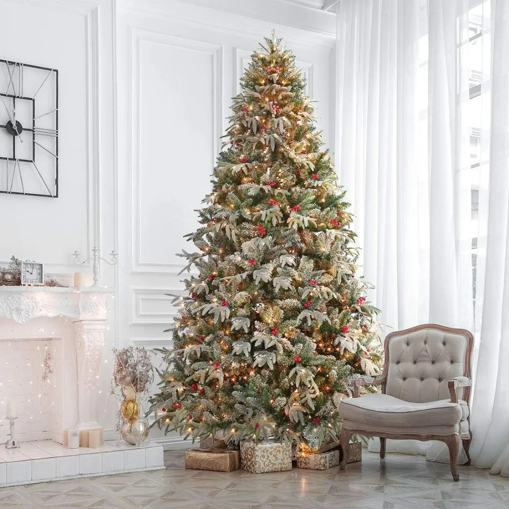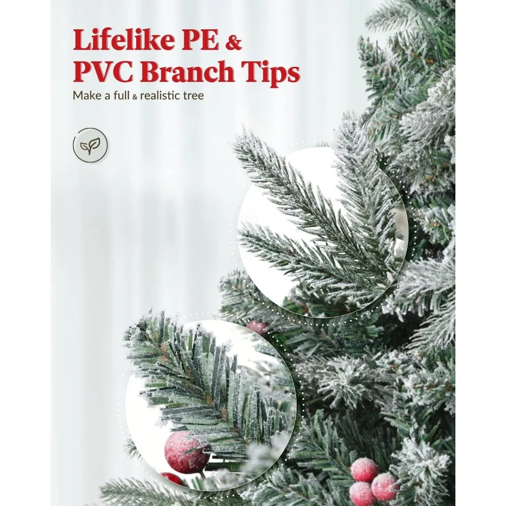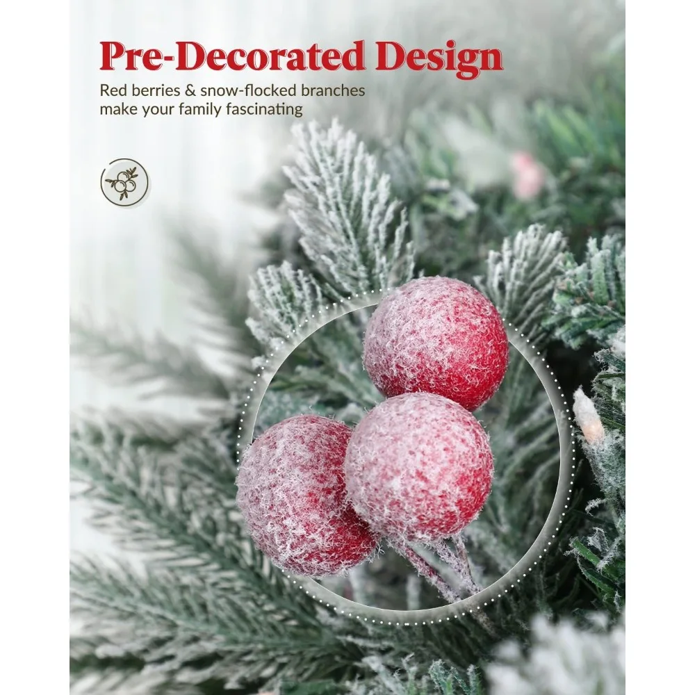 ❄Decorated Christmas Tree: The artificial Christmas tree is flocked with snow, comes with red berries and saves your time for decoration, making this Christmas tree an eye-catching decoration for home, office, holiday party, etc. . Fill your living room with a warm and pleasant atmosphere.