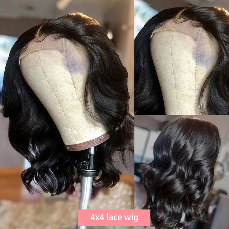 13x4 Body Wave Hair Lace Frontal Wigs Pre Plucked Remy Transparent Lace Wigs 4x4 Curly Short Bob Wig 100% Human Hair For Women