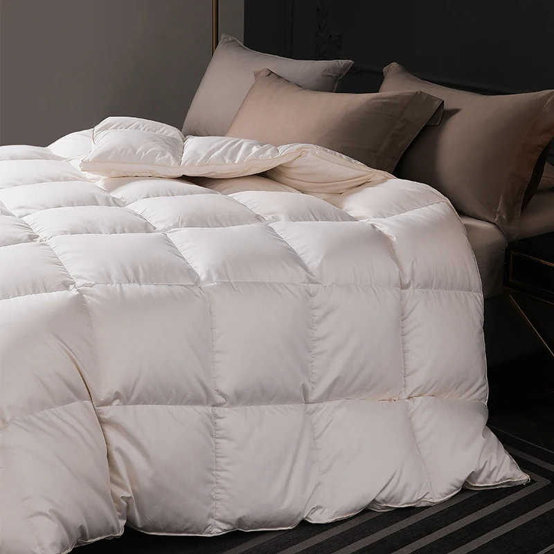 Experience unparalleled luxury and comfort with our high-end goose down quilt. Our encrypted high-end fabric and premium down filling provide a pure, noiseless, and weightless sleeping experience. With a high fluffiness and warmth similar to being surrounded by clouds, our real goose down will not only keep you cozy but also prevent allergies. Unlike impure down, our 95% 5A grade white goose down with large flowers and a bulkiness of 800+ and cleanliness of 1000+ sets us apart as a true breathing quilt. Don't settle for less, choose the best.