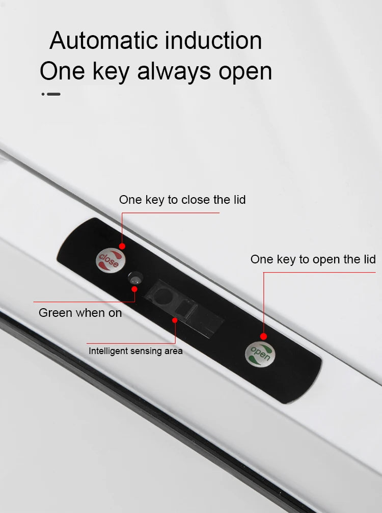 Intelligent induction, one-button always-on, low-noise opening and closing, long battery life, 0.3S cover opening, kick touch sensor